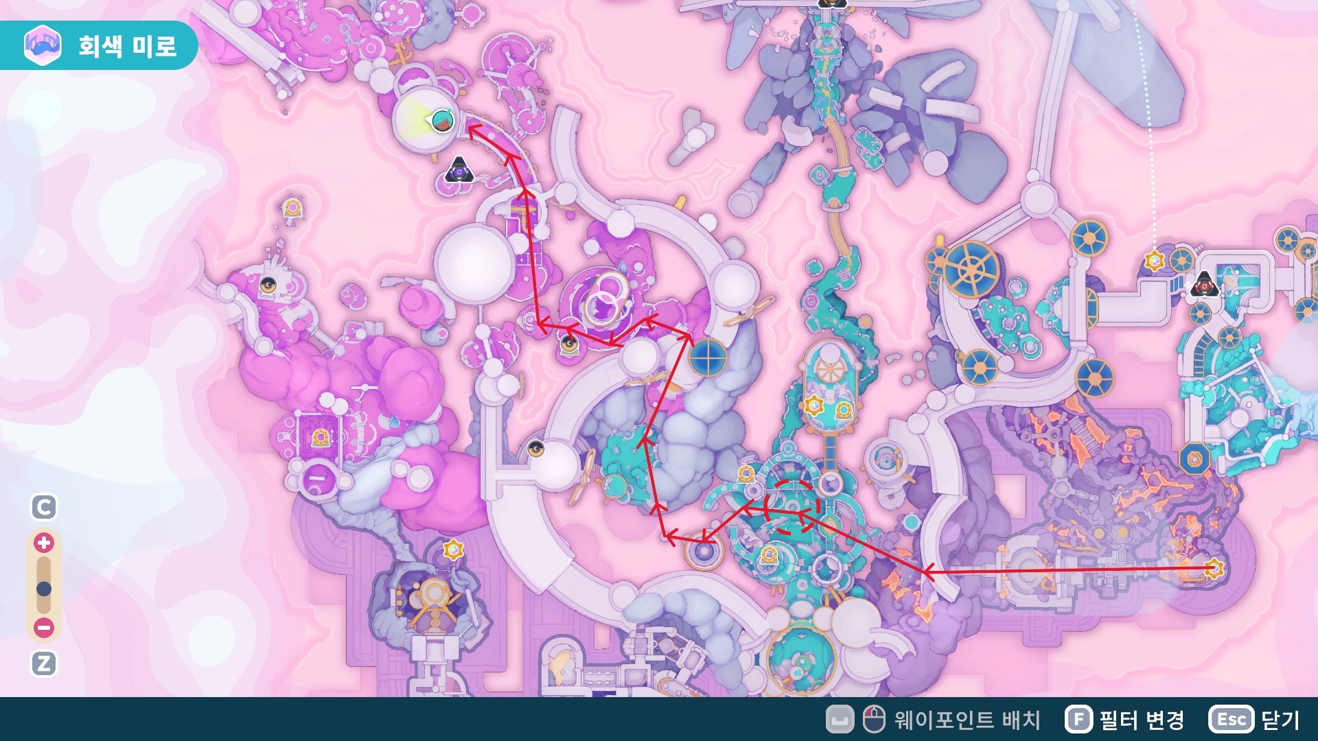 (퍼즐은 이미 다 풀었다고 가정하며, 방의 간략한 경로와 위치만 표시합니다.)
